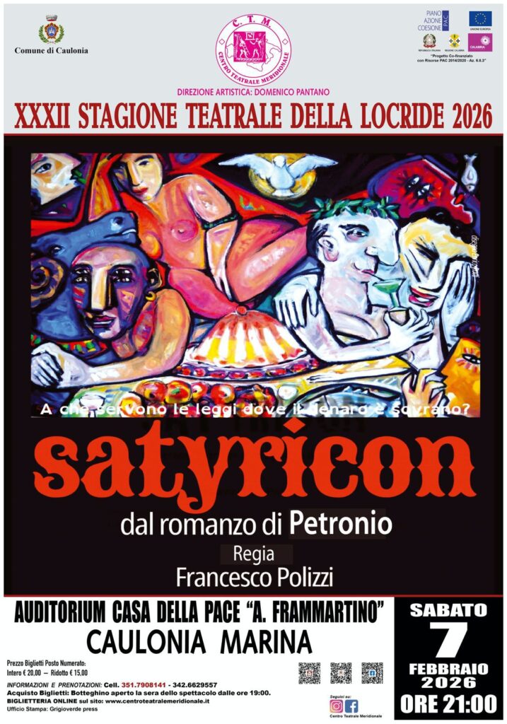 Satyricon – Dal Romanzo di Petronio Sabato 07 Febbraio 2026 – h 21:00 Auditorium Casa della Pace ‘A. Frammartino’ – Caulonia M. (RC)